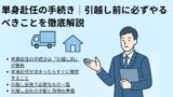 単身赴任の準備に追われて後回しにすると、生活が始まってからトラブルになりやすく、「こんなはずじゃなかった」というストレスにつながります。