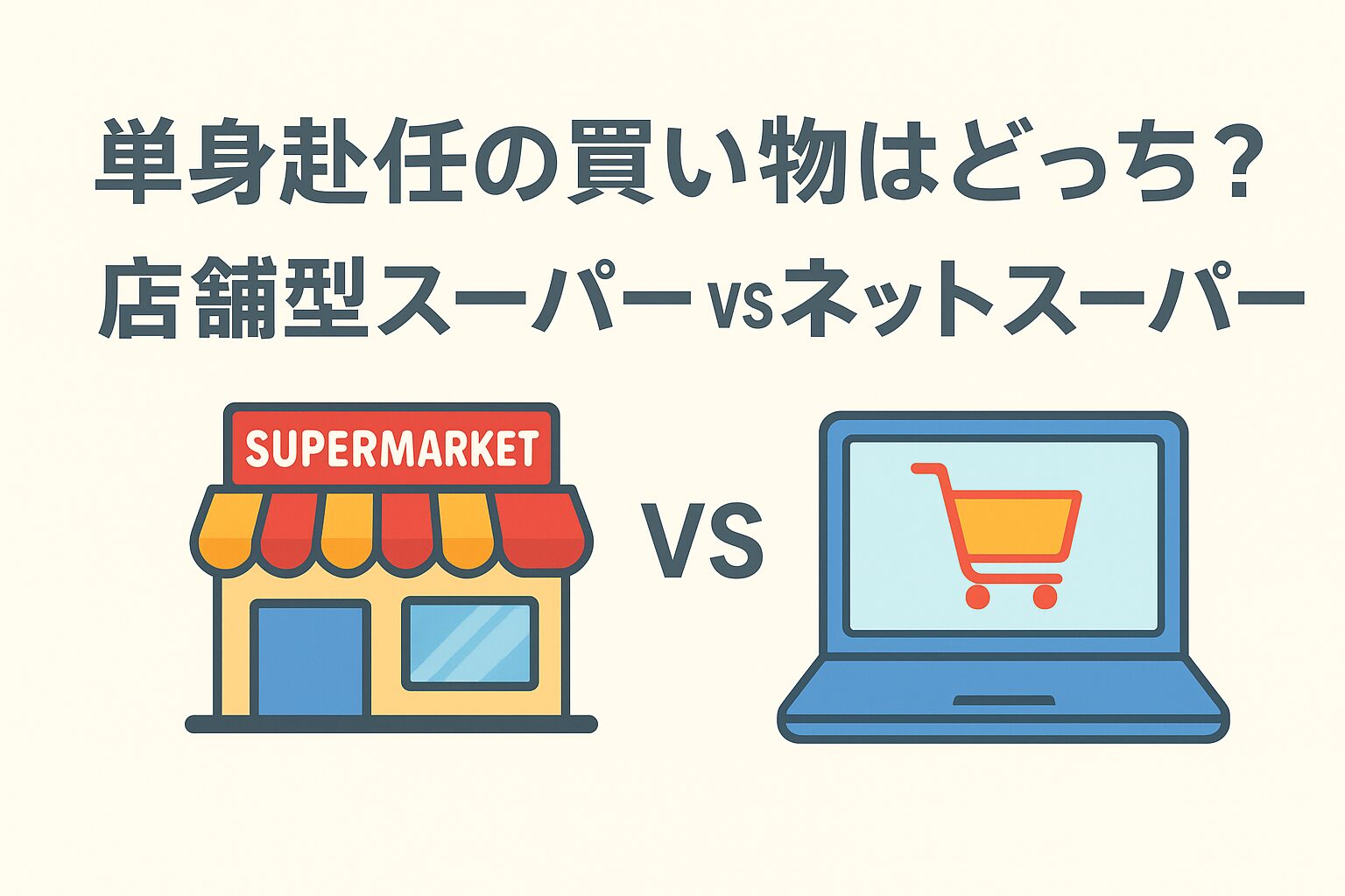 本記事では、単身赴任者がよく利用する買い物方法である**「お店で購入する場合」と「ネットスーパーで購入する場合」**のメリット・デメリットをわかりやすくまとめました。